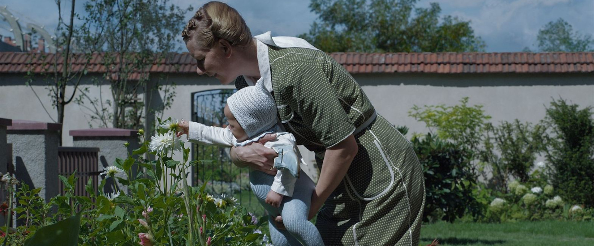 Du camp, l’on ne devine que quelques baraques derrière un mur d’enceinte, alors qu’au loin monte discrètement une fumée noire. Le vrombissement des fours crématoires est incessant et l’on entend le manège quotidien des trains, ou quelques hurlements et coups de feu, alors que le couple cultive ses fleurs et son potager dans l’indifférence de ce qui se passe à côté d’eux. L’on ne verra que très peu de déportés à l’écran, et ils sont totalement banalisés. Non-dits, mise en abyme, l’horreur n’en acquiert que plus de force derrière ces images de fleurs, de parties de campagne, ou lors des donations de vêtements subtilisés aux prisonniers, distribués à des proches, ou encore quand l’épouse dit avoir trouvé un diamant « intelligemment » caché dans un tube de dentifrice.
