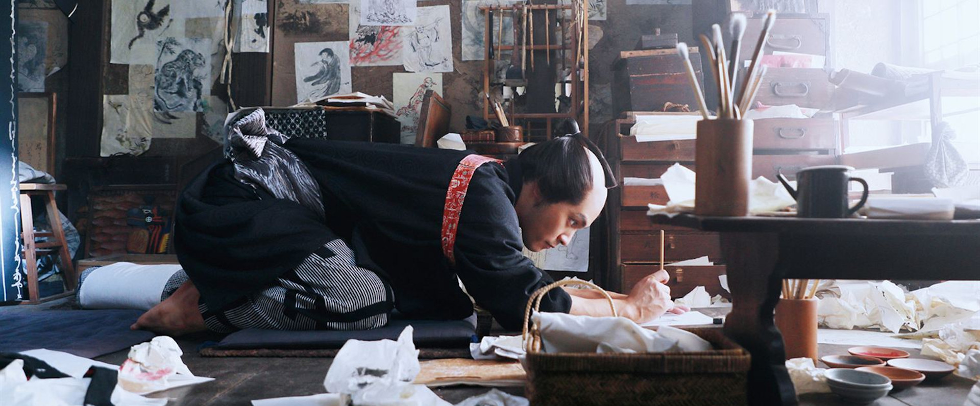 Parmi les choix de réalisation assumés d’Hashimoto, celui de ne pas rendre la vie d’Hokusai exceptionnelle, de le rendre humain et proche des gens, fonctionne. Avec ses nombreux défauts, son côté obsessionnel qui pourtant ne l’a pas empêché d’aimer et d’avoir des amis, il réussit à en faire une figure abordable et humble. L’artiste ne se considérait même pas bon avant ses 60 ans, il a réalisé son chef d’oeuvre à 70 ans. Il a passé sa vie à dessiner. Plus qu’une obsession c’était sa raison de vivre et ça se ressent à travers le métrage.