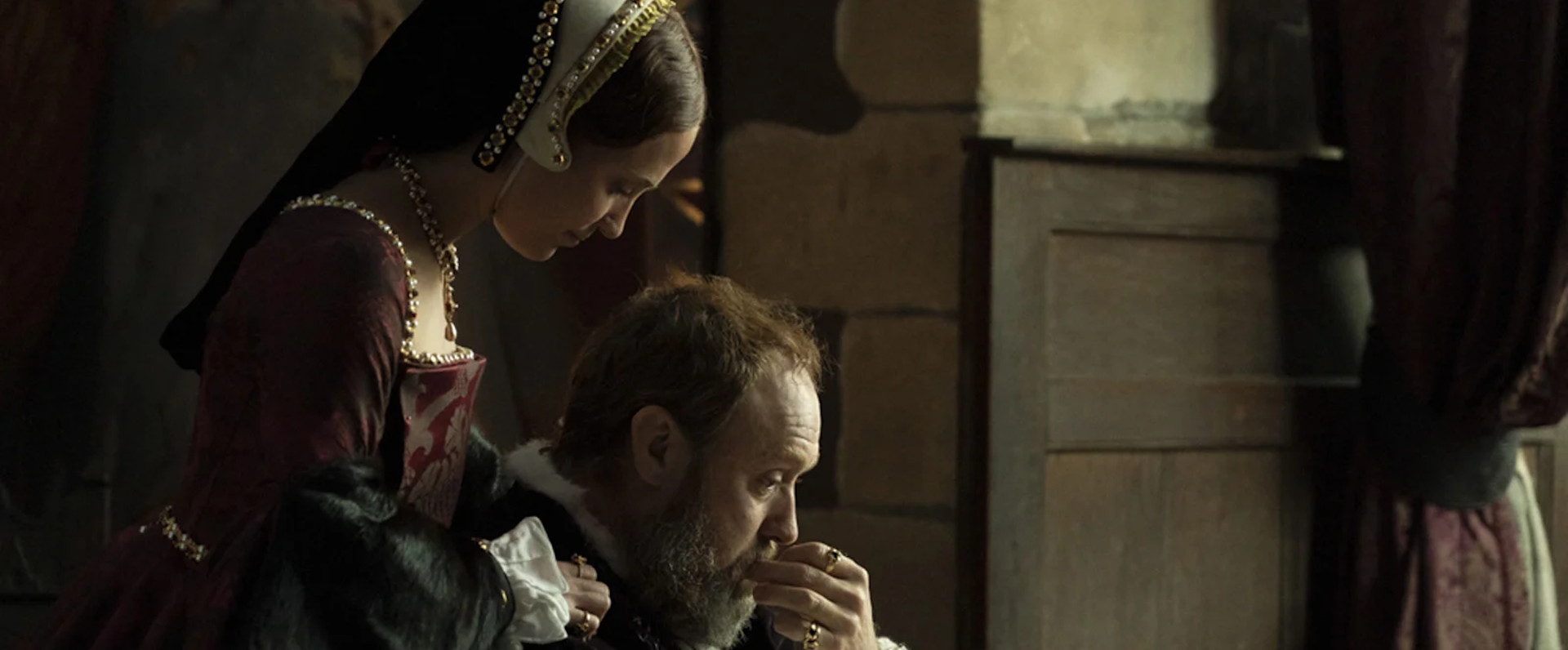 Karim Aïnouz peaufine une reconstitution du XVIe siècle britannique réaliste et sobre, teintée de brumes et de ténèbres métaphoriques. Elles suggèrent une époque confuse, dominée par une peste dévastatrice dans le royaume, la guerre avec la France et l’Espagne, et un souverain méfiant autant qu’imprévisible. Son conflit avec le pape, lié à ses multiples répudiations, sinon assassinats, et ses remariages, aboutira à l’instauration d’une religion nouvelle en Angleterre, l’anglicanisme.