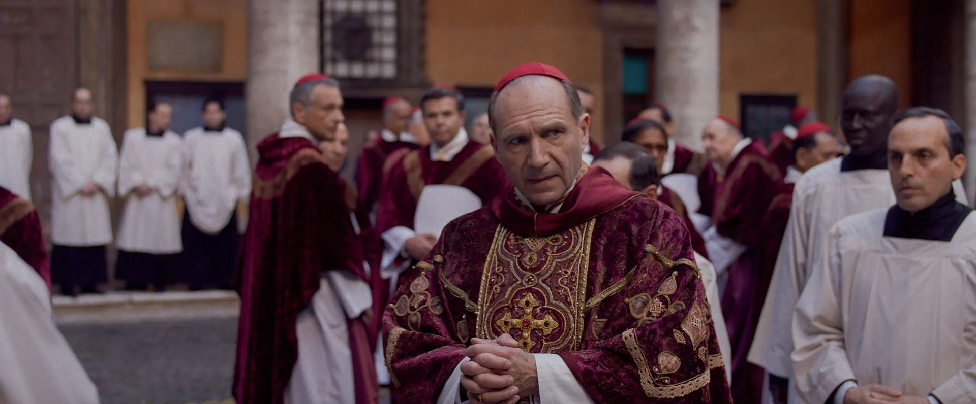 En latin, le mot « conclave » veut dire « avec clef ». Comprendre que les cardinaux sont enfermés et isolés des influences du monde jusqu’à ce qu’ils soient parvenus à élire un pape. Cela pourrait être un processus fastidieux que de les voir placer leur bulletin dans l’urne à plusieurs reprises. D’autant plus qu’ils sont nombreux. C’est sans compter la maestria d’Edward Berger qui orchestre les votes comme des ballets.