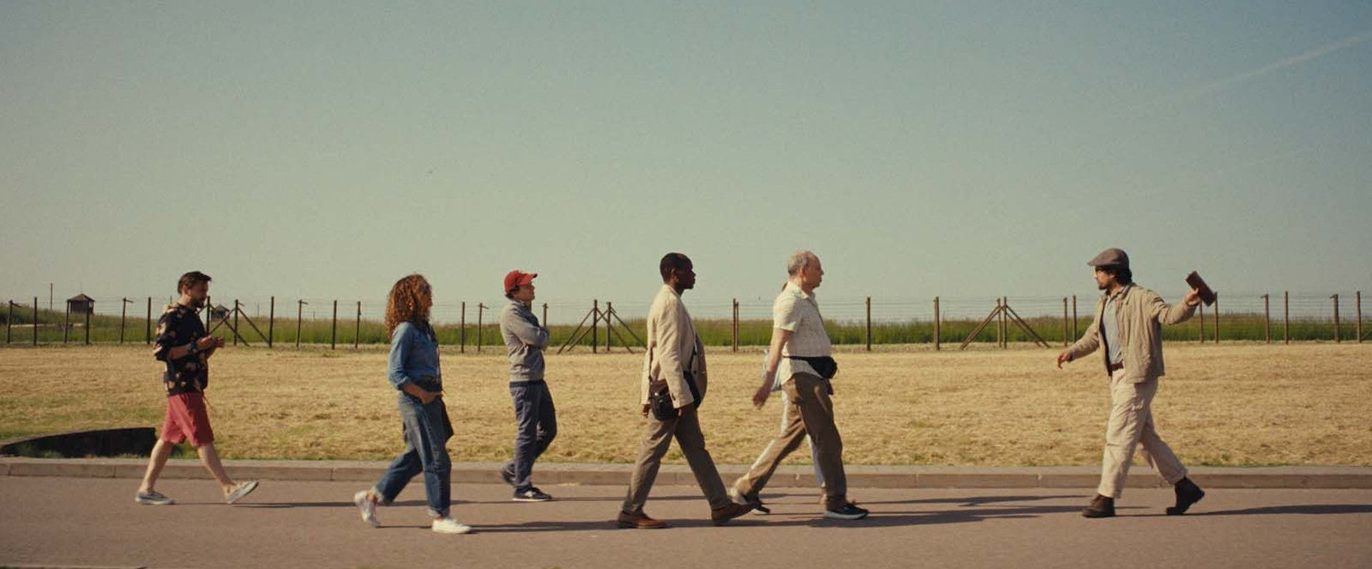 Pour faire ce pèlerinage, le duo a fait appel à une entreprise qui propose des circuits dans les différents lieux de mémoire de l’Holocauste en Pologne. Avec un petit groupe hétéroclite, un couple de retraités américains, une femme fraîchement divorcée et un Rwandais converti au judaïsme, David et Benji entament ce voyage sous la houlette de James (Will Sharpe), un universitaire spécialiste de la Shoah, guide plein de bonne volonté qui abreuve son auditoire de sa science.