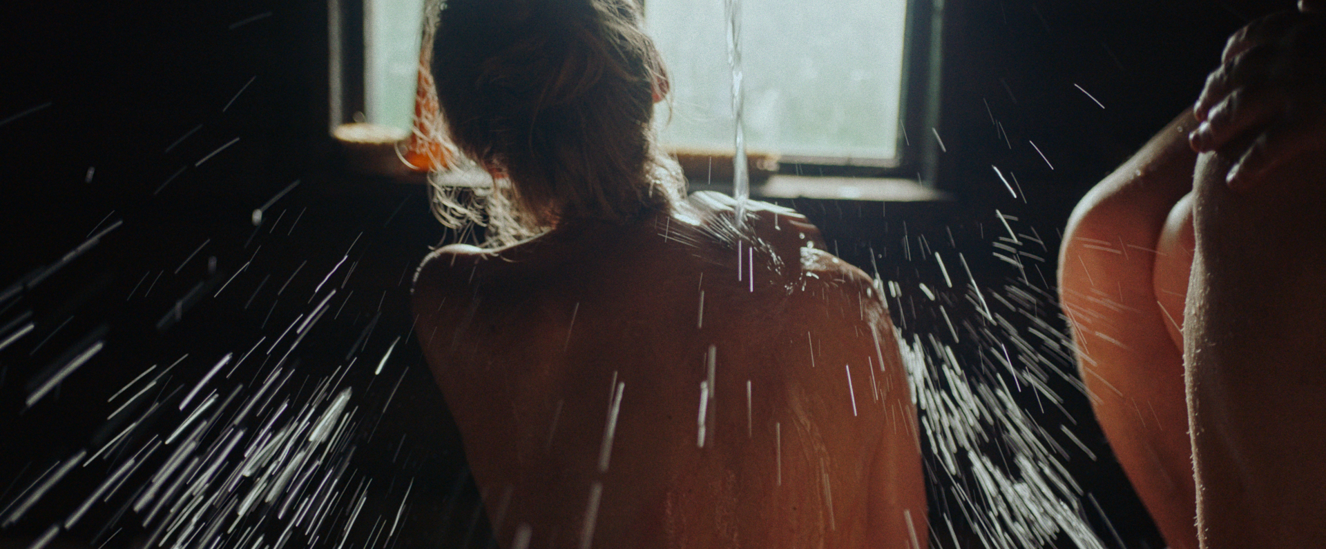 La réalisatrice enchâsse ces mots aux pouvoirs libérateurs dans une mise en scène épurée qui fait la part belle aux corps nus sans le moindre voyeurisme, aux membres dénoués, aux reflets de la peau scintillante d’humidité. Le contraste entre ombre et lumière, la nature verdoyante des prés traversés et les tons plus neutres de cet espace confiné qu’est l’intérieur du sauna composent un tableau fascinant et inattendu.