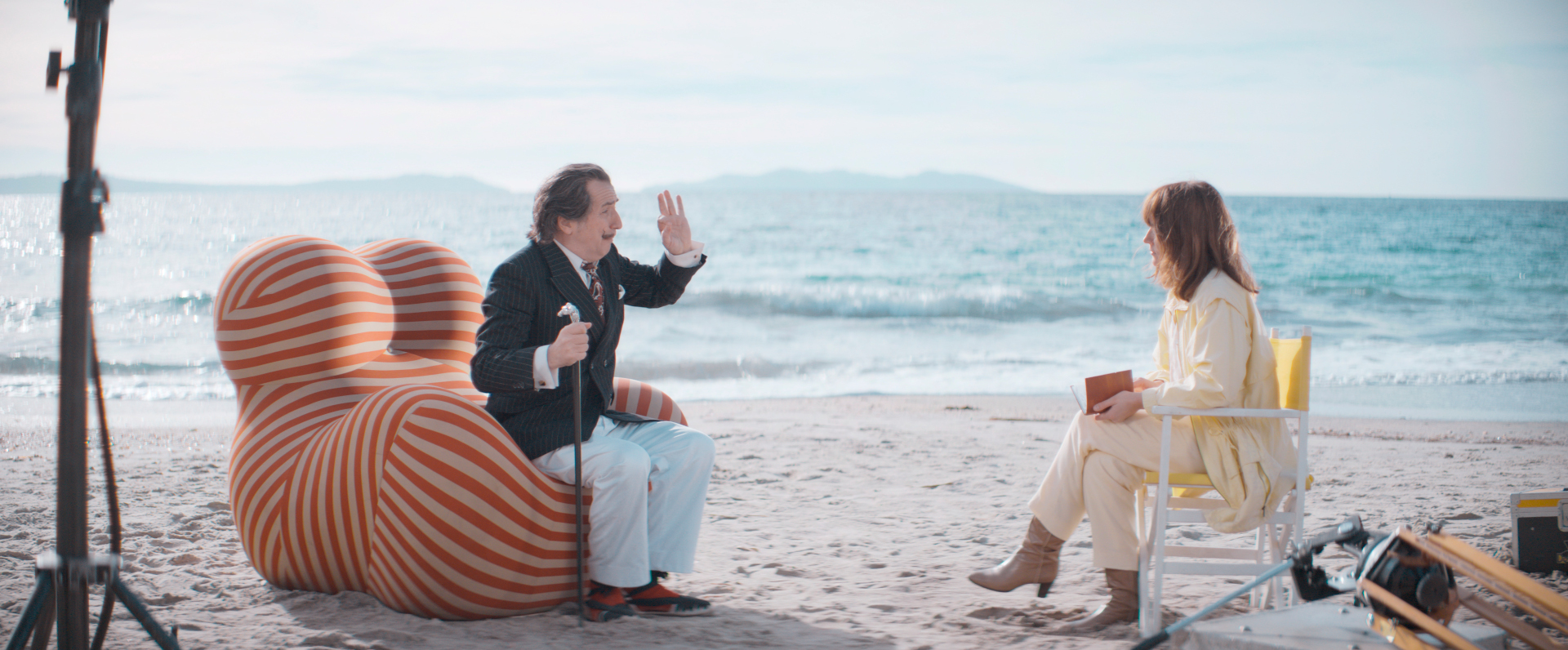 « Comme Dali le disait lui-même, sa personnalité était probablement son plus grand chef-d’œuvre. Mon film raconte modestement cela », confie le réalisateur dans le dossier de presse. Une journaliste, jouée par Anaïs Demoustier, cherche à coincer l’artiste le temps d’une interview. Un indice : elle n’est pas au bout de ses peines et c’est ce que raconte le film. Pour donner vie à ce projet aussi excentrique que son modèle, le réalisateur a usé du système qui lui réussit depuis très longtemps.