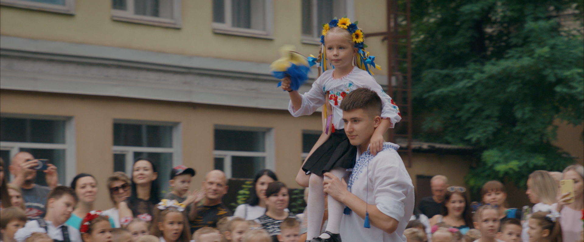 « Premières Classes » est un documentaire ukrainien, découvert en compétition au dernier Festival de Berlin, sous le titre « Timestamp« . Centré sur la question de l’éducation et le maintient des écoles ouvertes, malgré parfois la proximité du front, il s’agit d’un portrait de la résilience d’un peuple, soucieux, au-delà de sa propre défense, de conserver sa culture et son Histoire, qui ne peuvent être réduites au conflit en cours. Bien entendu le film ne cache rien des difficultés pour faire classe et de l’impact de la guerre (minute de silence, alertes, bâtiments en ruine, promiscuité des abris…).